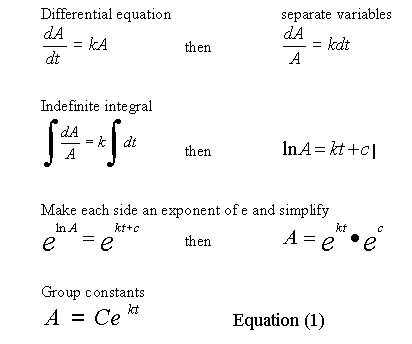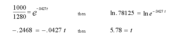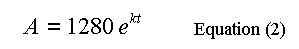 Substituting 1280 for A, into Equation (1) and solving for C at t = 0, gives C = 1280, so now