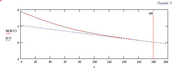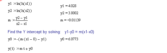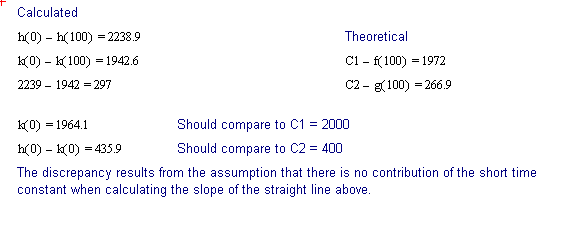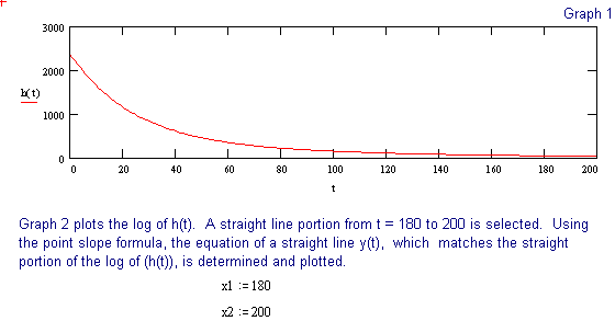 The values read from the Cursor and the calculated value of k, are rounded off so a small error will creep into the calculations as we proceed to use Equation (3). From Equation (3) we can now solve for A at any time t, then subtract that result from 1280 and find the quantity of gas that has reacted up to time t.
